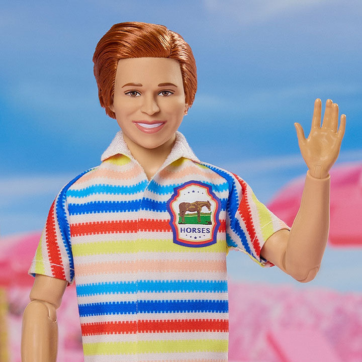 with a fashion you haven’t seen in doll form until now. When the Kens take over Barbie Land, Allan makes a change to his wardrobe that suits his quirky nature – he just adds a patch that says “Horses” to his beachwear. We’ve captured that look, and added his pink jumpsuit as a second outfit, complete with the belted waist and bright white sneakers.