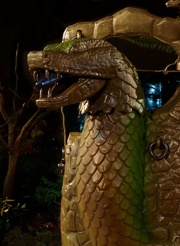 The Masters of the Universe Snake Lair is the fortress of Lady Slither and home base for the Snake Men. It was first featured in Classics Mini Comic #5, “He-Man vs. Skeletor! Their Final Battle!” but was never created in toy form. Now, you have the chance to bring it to life! The MOTU community voted it Eternia’s Choice, and we’ve incorporated fan feedback to shape the design. It’ll feature a throne room for Lady Slither, with a serpentine design exactly to her liking. Unwelcome visitors will be greeted with blasters, snatched up in capture devices, and placed into the iron maiden or snake shackles. No villain is complete without an evil steed, this set also features Lady Slither’s two-headed serpentine steed Chimera. This is your one and only chance, fund all the tiers and restore Lady Slither’s stronghold to its Preternian glory!