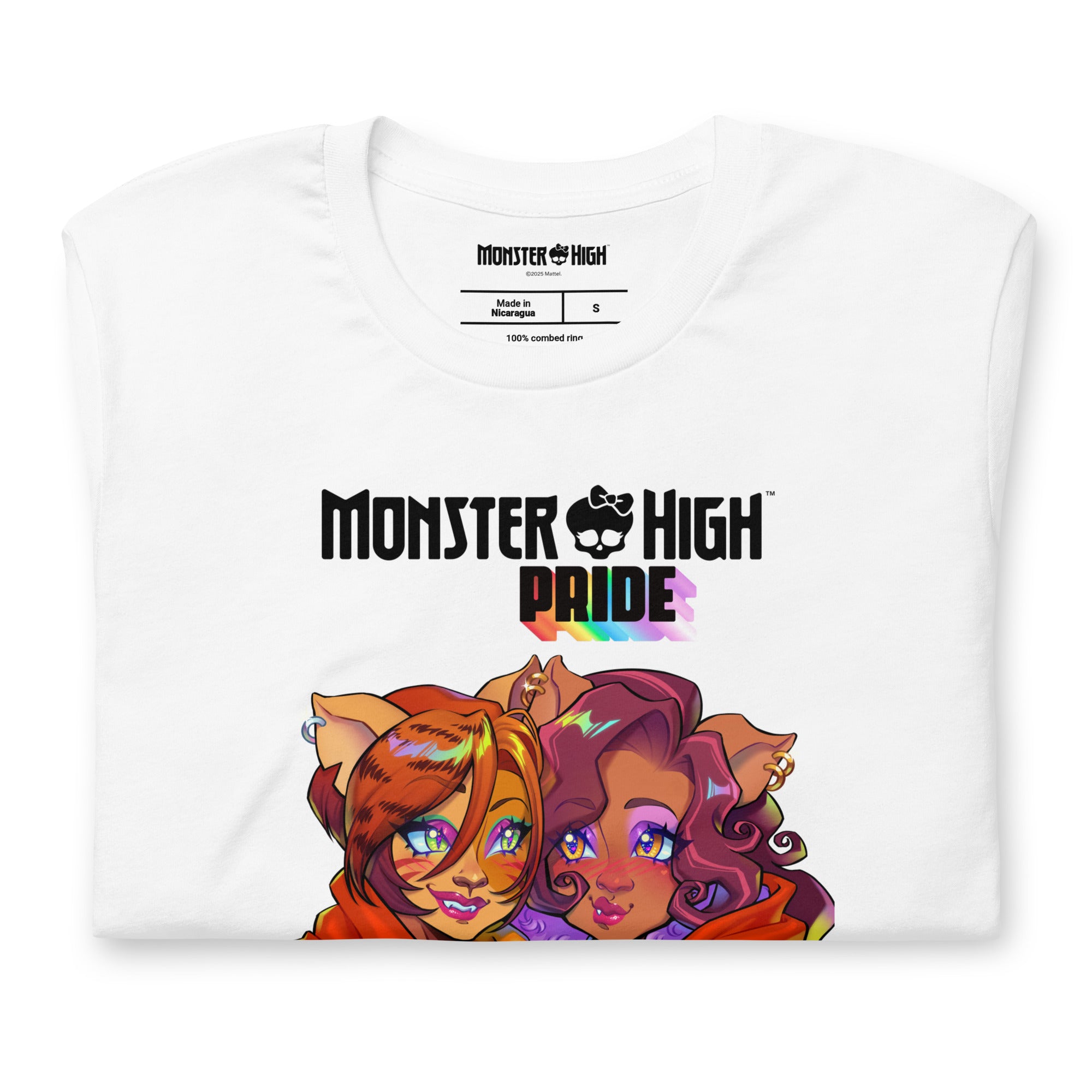 This Monster High Pride Toralei & Clawdeen White T-Shirt is everything you've dreamed of and more. It feels soft and lightweight, with the right amount of stretch. It's comfortable and flattering for all. This exclusive Monster High design is only available through Mattel Creations.