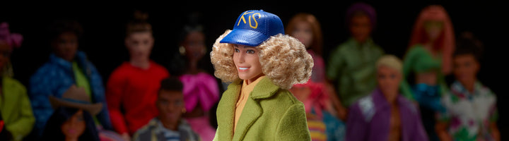 Colm Dillane, AKA KidSuper, a Brooklyn-based artist and designer, is the creative force behind KidSuper Studios, a collective known for its boundary-pushing fashion, art shows, films, and music. For our latest Styled by Design doll, KidSuper brings Ken doll into the spotlight, literally, in a bold lime green coat with vintage Ken and Barbie illustrations inspired by KidSuper's “Everything is Fake Until it’s Real” claymation show at Paris Fashion Week.