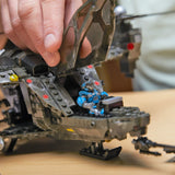 Suit up with NOBLE Team for one more sweep mission aboard the UNSC Falcon. This high-flying construction set features a large troop bay big enough to transport an elite fireteam — the six included micro action figures. Build the air transport carrier, complete with dual spinning propellers and posable gunner turret, equip the rest of the team and place your designated pilot in the cockpit. Then close the hatches and prepare to fly into action.