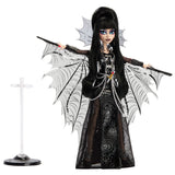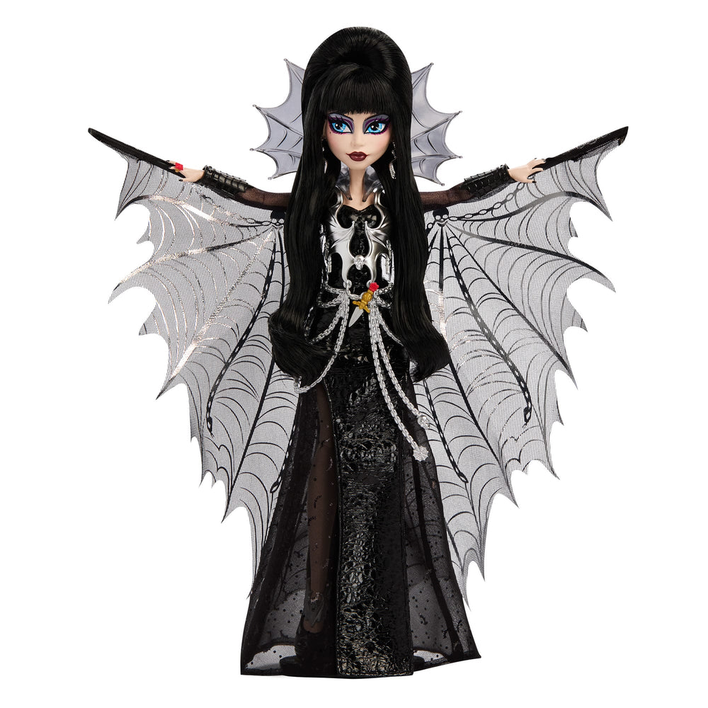Frightmares really do come true! Once again, Monster High has collaborated with the Mistress of the Dark herself to conjure an Elvira Skullector doll. With a shimmering batwing cape and black faux-leather dress, her goth and glitzy look is inspired by her grand finale fashion in the movie Elvira: Mistress of the Dark. So, dim the lights and make yourself un-comfortable, because Elvira is going to take the stage and put on a performance that’ll raise the dead!
