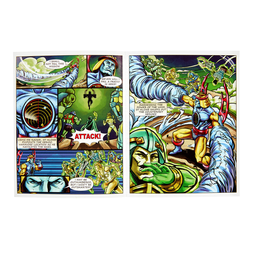 The blue-skinned spinning hero known as Sy-Klone returns as a Masters of the Universe Origins figure. Originally introduced in 1985, this character has had a few different origin stories. Whether a cyborg, an acrobat, a samurai, or a prince, Sy-Klone is a force for good with his spinning tornado powers.