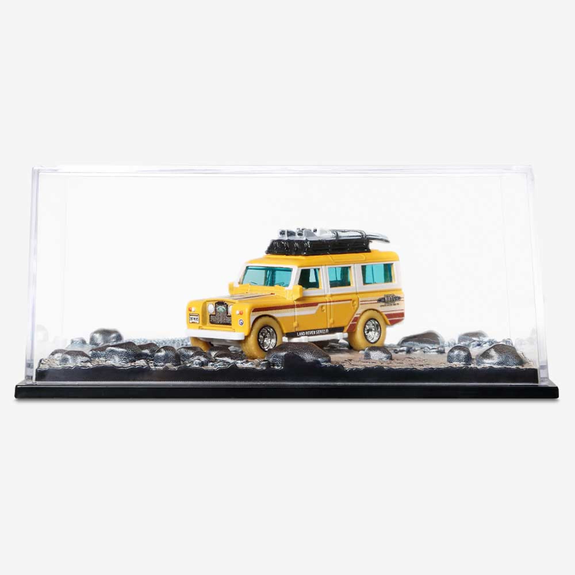 The Land Rover was designed to go global. Africa. Australia. The Middle East. The Far East. The rugged outdoor traveler even showed up at Matchbox in 1966, suitcases on roof, and eventually a safari rack. Tough like that deserves a break – with the first appearance of a new surfboard rack! Now this superior edition of the Land Rover Gen II Safari, including full interior, removable topper, and detailed base deco, joins the new Matchbox Collectors line!
