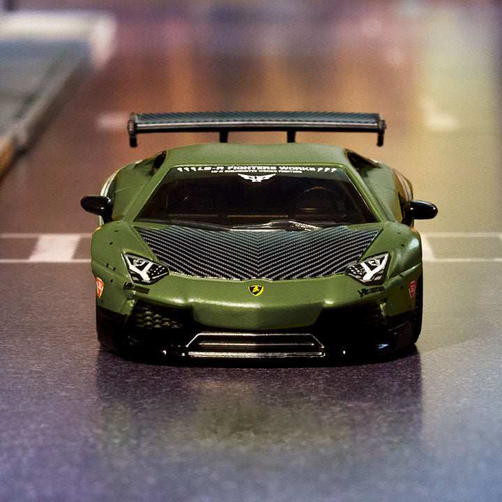 The legacy of one of Italy’s greatest speed icons has been enhanced by one of Japan’s masterful car-tuning workshops to create a global sensation, the Hot Wheels Elite 64 LBWK Lamborghini Aventador LP 700-4. This super sports car features matte-green paint, carbon-fiber-style accents, and Real Riders wheels for the ultimate ride. One look at the V12 beneath the removeable engine cover, and you’ll know the powerful Aventador is ready to race into your collection.