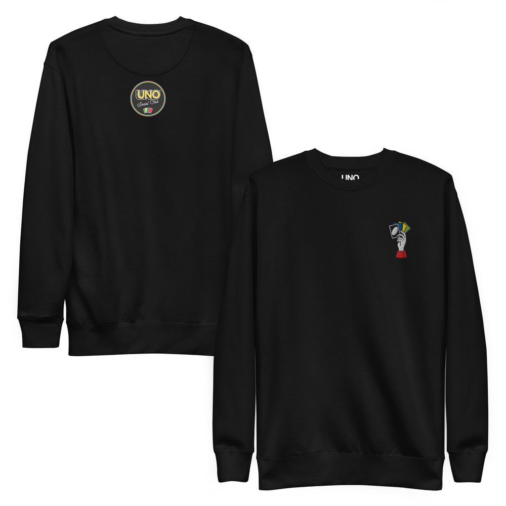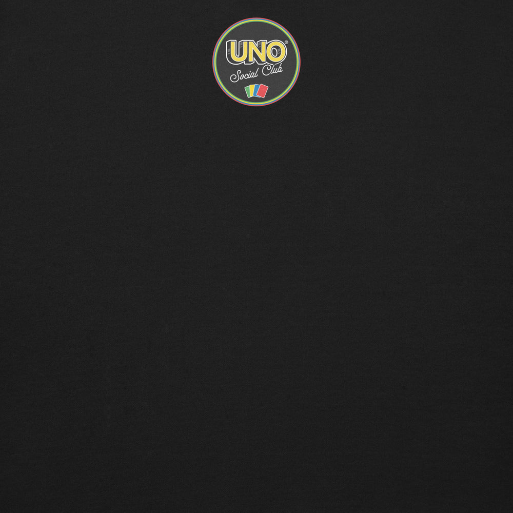 Rock our classic UNO Social Club Black Sweatshirt with ribbed crew neck, long sleeve cuffs, and a flat hem. Layer it up or wear it on its own for a contemporary streetwear look. With the soft fleece inside and comfortable fit, it’s sure to become your favorite everyday sweater right away! This exclusive UNO design is only available through Mattel Creations.