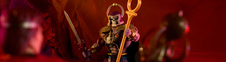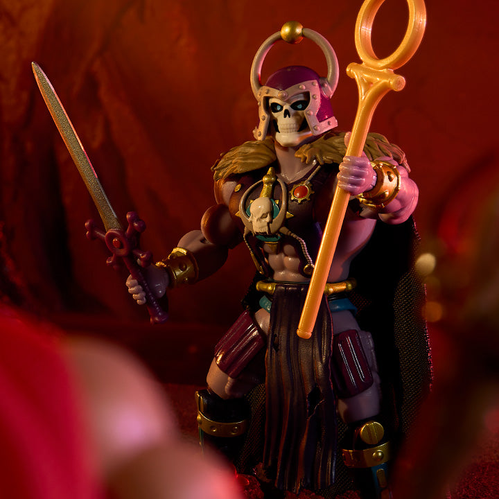 From the depths of MOTU lore and Preternia comes a new evil to contend with. The Great Black Wizard is a villainous sorcerer previously only teased on packaging artwork. Originally concepted by Axel Gimenez, this warlock’s first time in the spotlight is as a members-only figure that highlights the strength of his magic and his fighting prowess. With a massive sword in one hand and a Shaping Staff in the other, dressed head to toe in battle armor, this skull-faced wizard is a truly daunting foe.