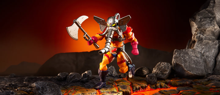 Snout Spout, the Eternian firefighting cyborg, is back and bigger than ever. This oversized Masterverse figure of the heroic firefighter towers over most villains. With a removable water tank and hoses along with his iconic axe, he can douse fires and evil-doers with his water blast effect.
