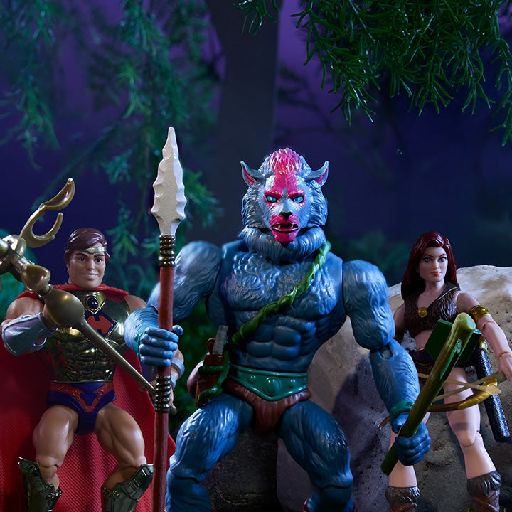 From the mists of Preternia a masked enigma emerges: the Masters of the Universe Origins Red Shadow action figure. A beast man shunned by his people, Red Shadow was forced to wear a mask and serve the Great Black Wizard until he was freed by Moss Man. The mask remains, but Red Shadow uses his abilities (and included club, dagger, and spear) to fight for King Grayskull.