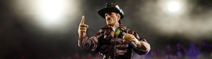 The hottest thing in professional wrestling arrives as a WWE® Ultimate Edition action figure – it's Jesse “The Body” Ventura™. He’s ready to flex as the unforgettable ringside commentator you loved at SummerSlam® 1989 and on Saturday Night’s Main Event, or as the unmissable Hollywood star. Interchangeable heads make it easy to switch between his personas, and if anyone gets out of line, interchangeable hands give him the fingers to point them out, or the fists to rumble.