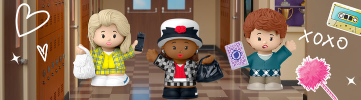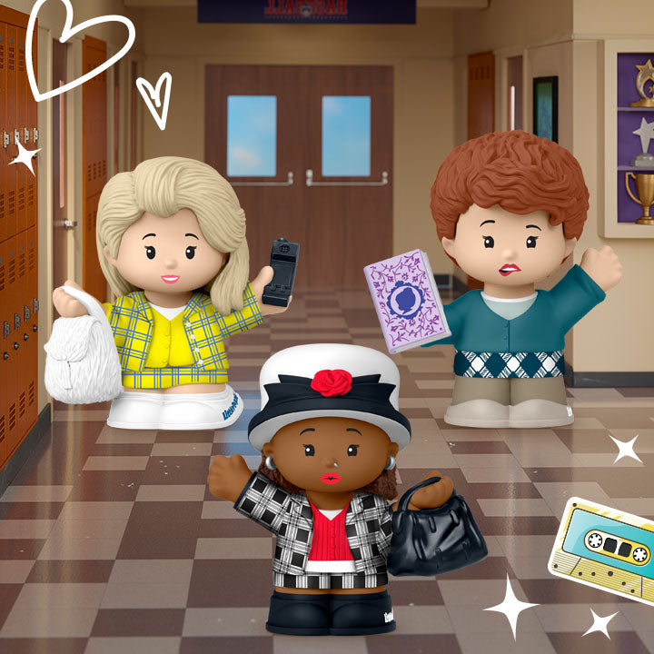 One of the biggest movie hits of the ‘90s just got a Little People Collector makeover. This exclusive set celebrates the movie’s 30th anniversary and includes its three star characters, dressed for a shopping spree. These Beverly Hills it-girls are wearing their iconic plaid ensembles – Cher in her bright yellow set, Dionne in her black and red plaid look, and Tai in her more casual green style with a messy bun. Each one holds a signature accessory – as if they’d go anywhere without one.