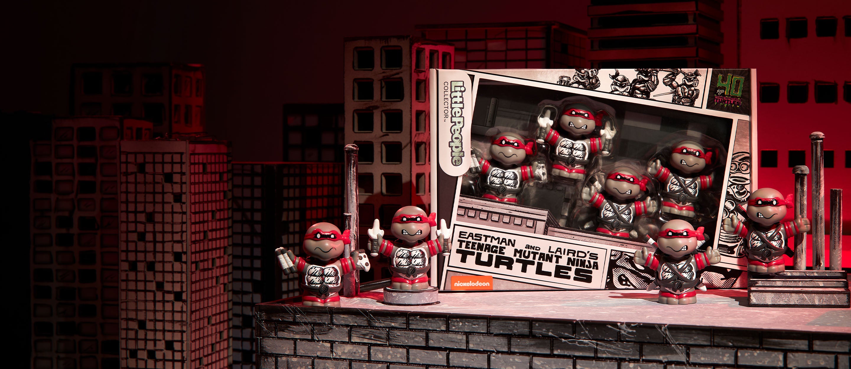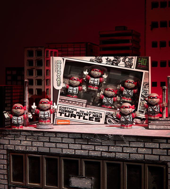 The first TMNT comics were released in an edgy black-and-white format with splashes of red. We brought that serious tone back for this collection of figures.