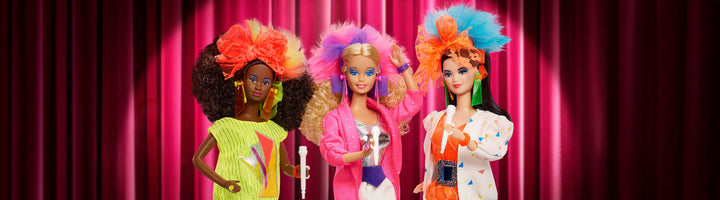 Are you ready to rock? The ‘80s are calling and they’re sending an iconic Barbie collection back for an encore. First launched in 1986, Barbie and the Rockers were a doll band with massive star power. Now they’re back for a 40th anniversary reunion tour, rocking their quintessential original looks. Fashionista frontwoman Barbie looks totally awesome in a hot pink blazer, silvery top, and striped leggings. She completes the look with slouchy white boots, tons of accessories, and perfect ‘80s curls.