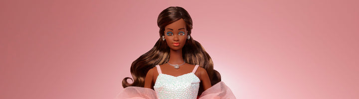 Doll cannot stand alone. Doll stand included. Colors and decorations may vary. Purchase limits subject to change at the sole discretion of Mattel. From June 26, 2025, at 9:00am PT through June 27, 2025, at 8:59am PT, only Barbie Club 59 members can buy this doll at MattelCreations.com, while supplies last. Beginning June 27, 2025, at 9:00am PT, the doll will be available to the general public.