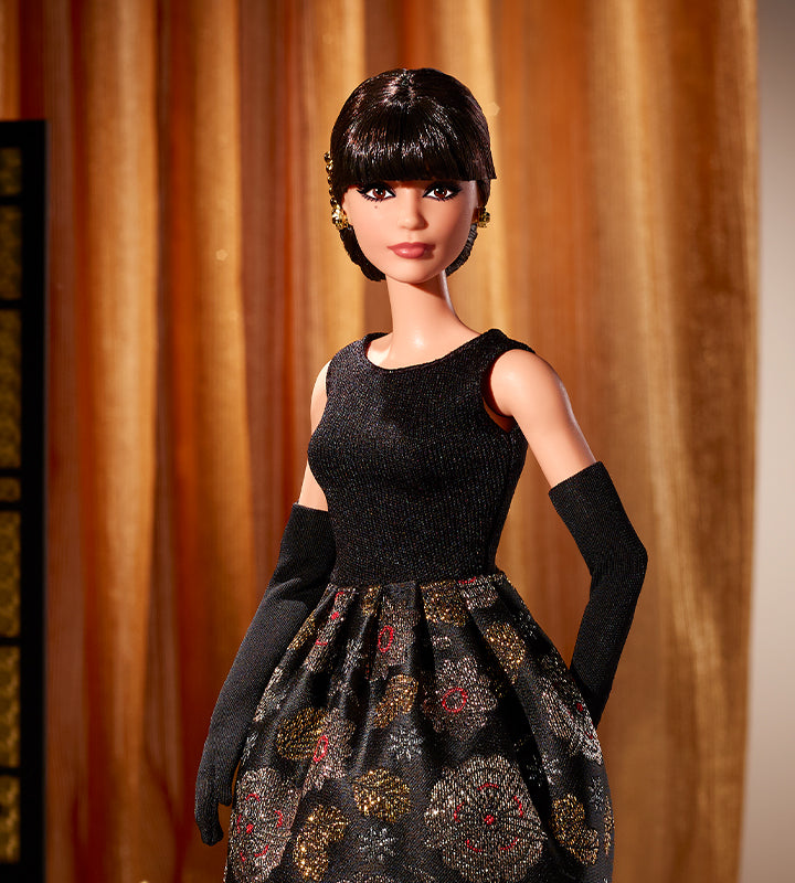 Our Rita Moreno doll exudes power and poise with opera-length gloves, classic heels, statement earrings, and a sleek up-do.