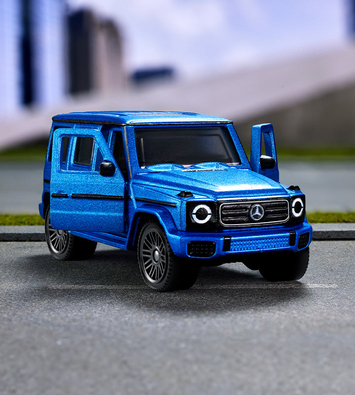 One of the most iconic SUVs is going electric, and Matchbox is celebrating this environmental achievement. Introducing the Mercedes-Benz G 580 with EQ technology – also referred to as the EQG. This highly anticipated 1:1 car was finally unveiled on April 23, 2024, making this the first 1:64 scale die-cast replica of the groundbreaking vehicle. We even made it with innovative materials to reflect its environmental impact.