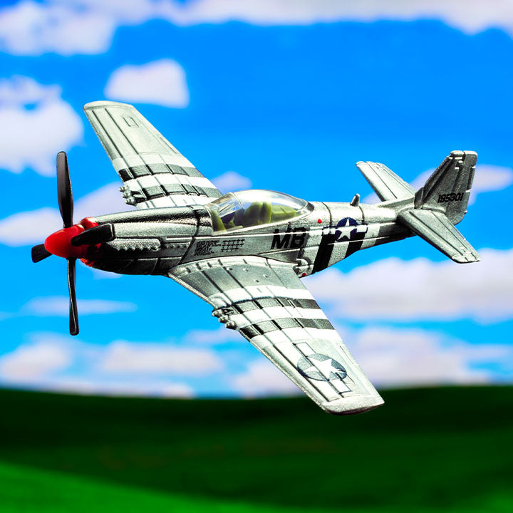 The plane that advanced aeronautics in 1940 is turning 85, and to commemorate the occasion, we’re releasing a highly detailed replica of the North American P-51 Mustang. The piston-engine plane, famous for its ability to fly long range missions and reach speeds of over 400 mph, has been recreated with working landing gear and a moving four-blade propeller.