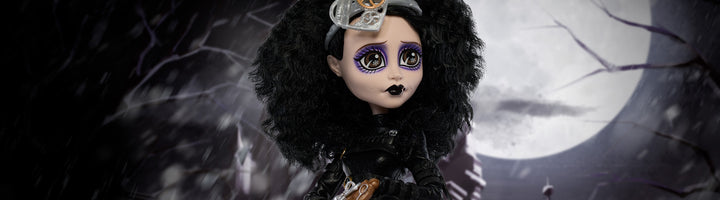 Monster High celebrates the 35th anniversary of the cult classic gothic fantasy film with a stunning Edward Scissorhands doll. Seamlessly blending the styles of Monster High and Tim Burton, this scary-chic doll wears a black faux leather bodysuit with buckle straps across the bodice and a sheer skirt. Knee-high black boots end in killer heels featuring iconic movie-related Easter eggs. Her wild, voluminous hair harkens back to the character’s on-screen lurk, and the scissors adorning both hands are an essential final touch.