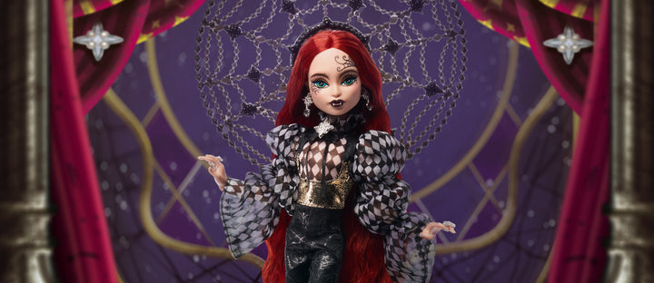Monster High has partnered with visionary fashion designer Harris Reed for a darkly glamorous doll that exudes spellbinding style — the Witch Weaver. Wearing a crystal spiderweb hat inspired by Reed’s signature headpieces, the Witch Weaver conjures sartorial magic with a sheer harlequin blouse and midnight-black bell bottoms. Able to weave benevolent spells, this enchanting witch empowers every monster to express their true self — in whatever form that may be.